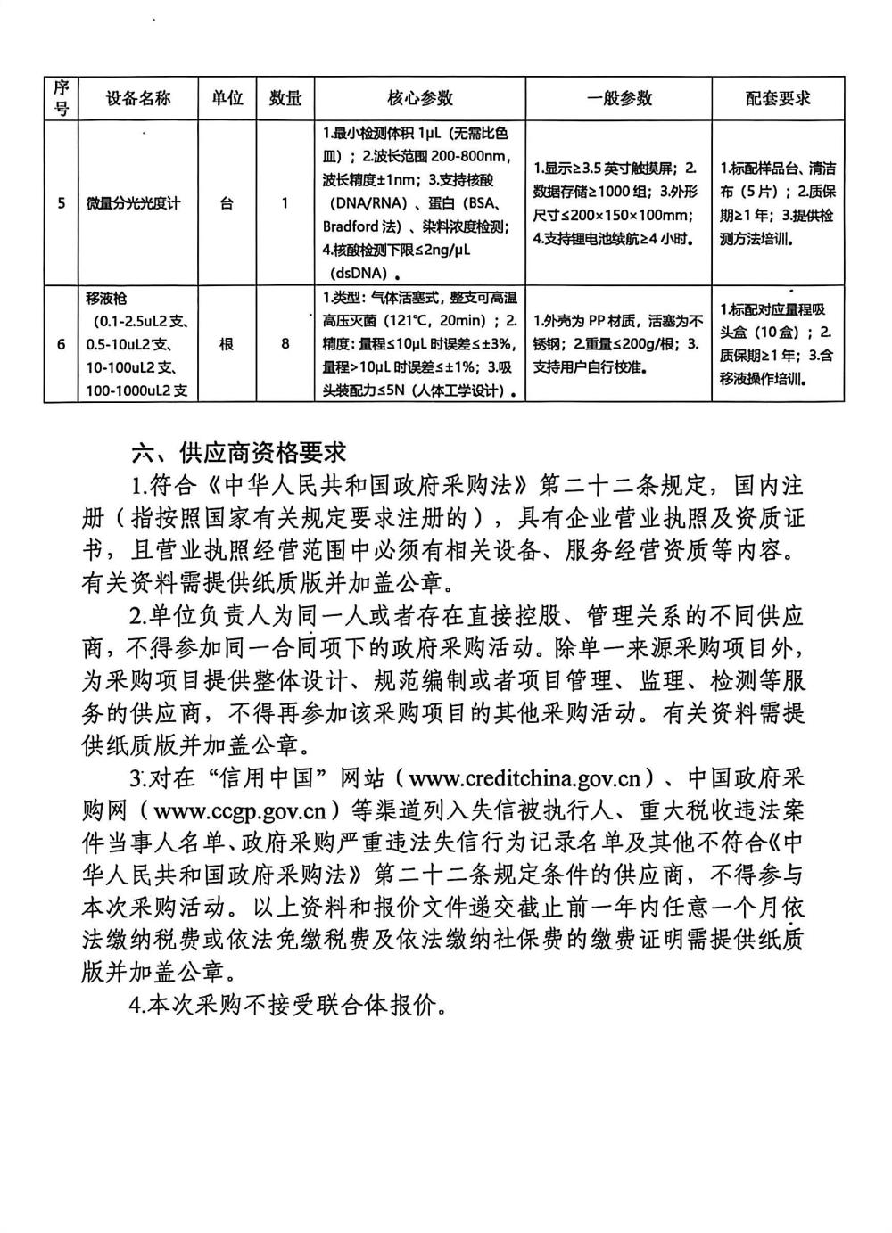 附件:分析测量设备的采购清单和参数需求