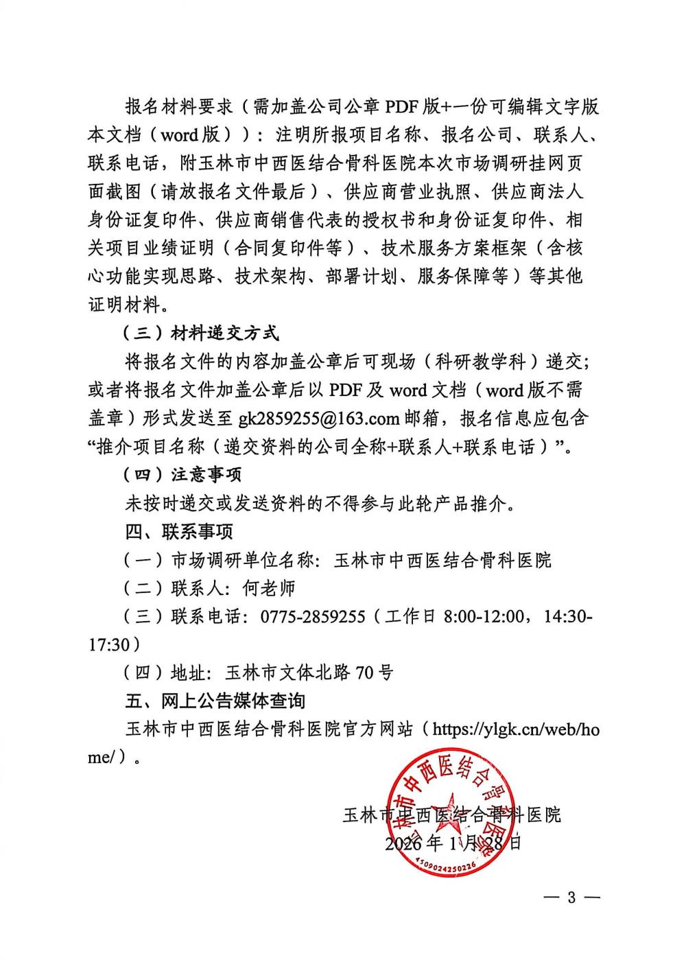 玉林市中西医结合骨科医院关于中医治疗设备的市场调研公告