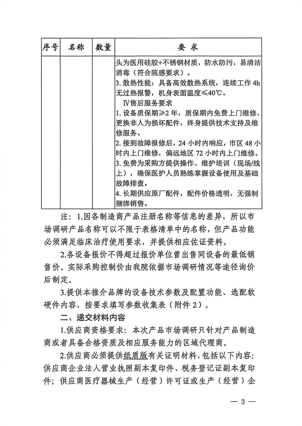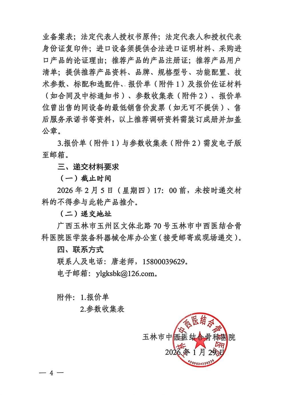 玉林市中西医结合骨科医院关于中频治疗仪等四个项目的市场调研公告