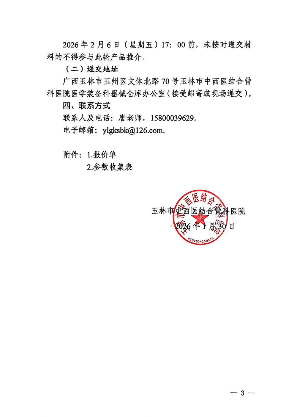 玉林市中西医结合骨科医院关于锐珂DR维保的市场调研公告