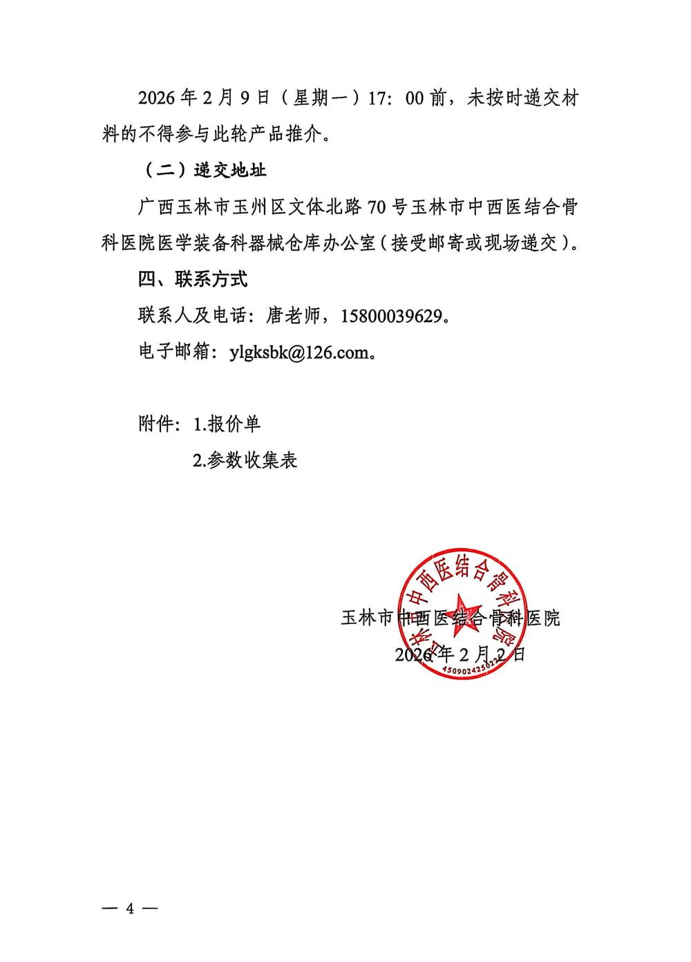 玉林市中西医结合骨科医院关于综合外科设备(二)的市场调研公告