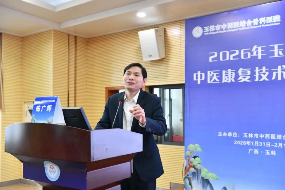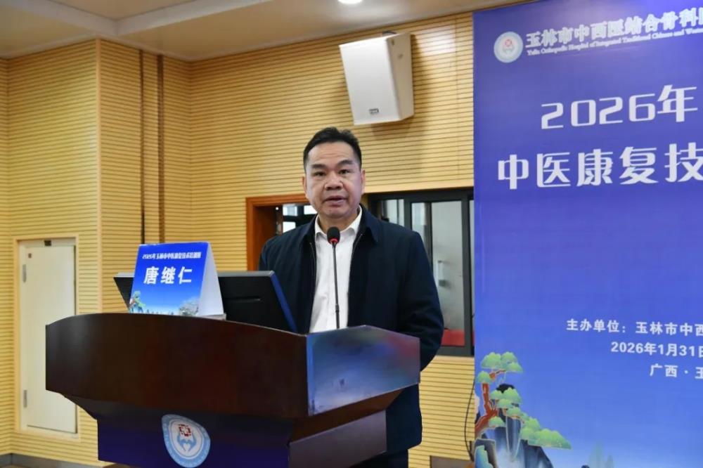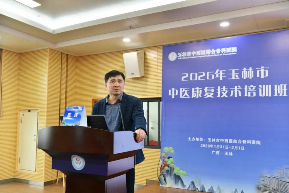 为深入贯彻落实《玉林市中医药传承创新发展示范项目实施方案》等文件精神,持续提升区域中医康复诊疗水平与服务能力,促进优质中医药康复资源下沉,1月31日至2月1日,由玉林市中西医结合骨科医院筹办的2026年玉林市中医康复技术培训班隆重召开。来自容县、陆川县、福绵区等各县区级医院及乡镇卫生院的100余名康复科、中医科相关医师与技师齐聚一堂,共同开启为期两天的学习提升之旅。玉林市中西医结合骨科医院党委书记陈正其、党委副书记、院长唐继仁、副院长陈涛、广西中医药大学附属第一医院副院长陈广辉、广东省第二中医院针灸康复科主任陆彦青、玉林市中西医结合骨科医院医务部部长梁周出席开幕式,开班仪式由副院长陈涛主持。