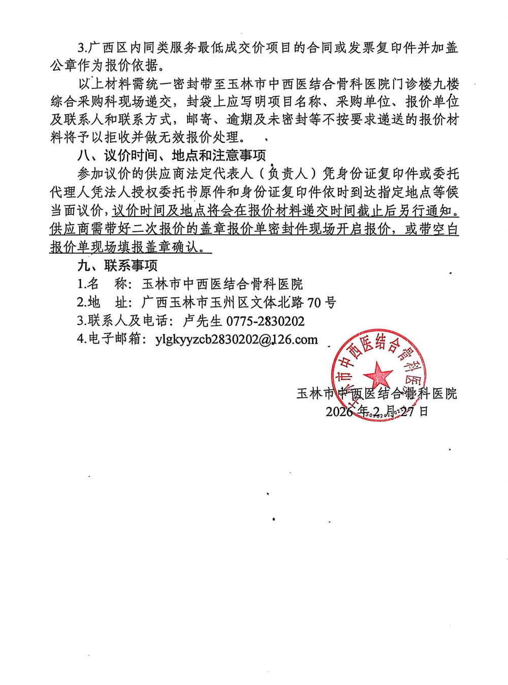 玉林市中西医结合骨科医院燃气全预混蒸汽发生器采购项目公告