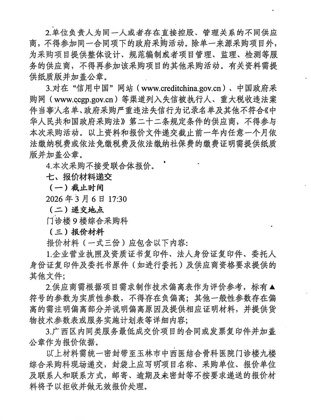 玉林市中西医结合骨科医院“西学中”培训设备采购项目公告