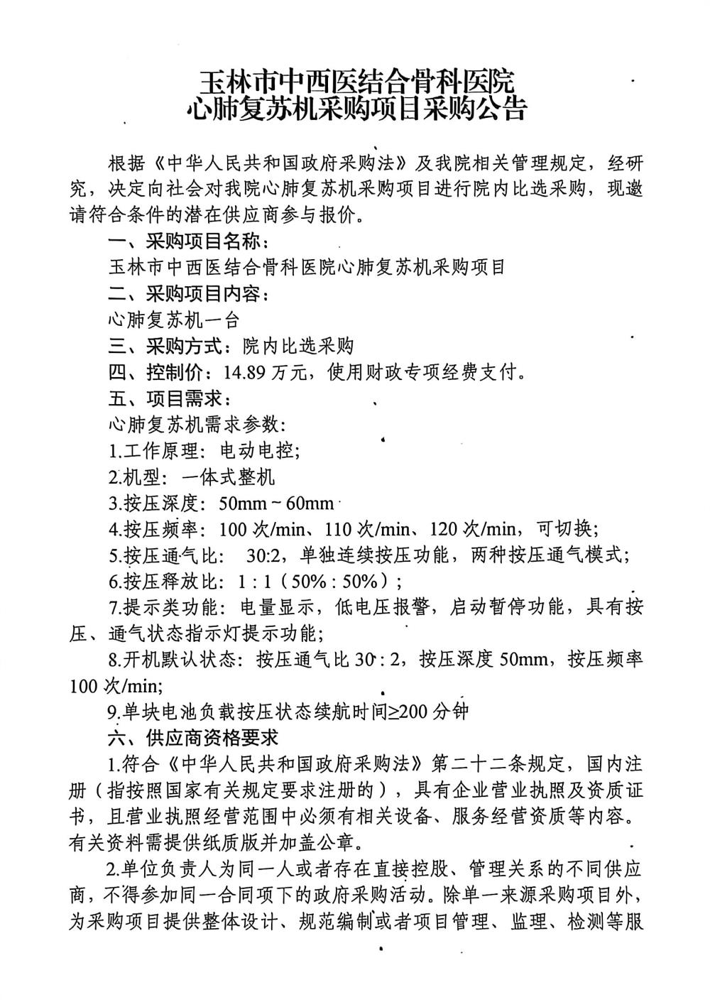 玉林市中西医结合骨科医院心肺复苏机采购项目采购公告