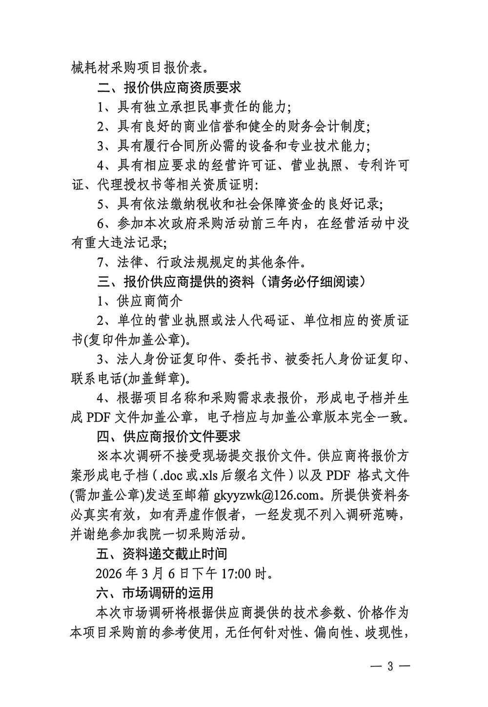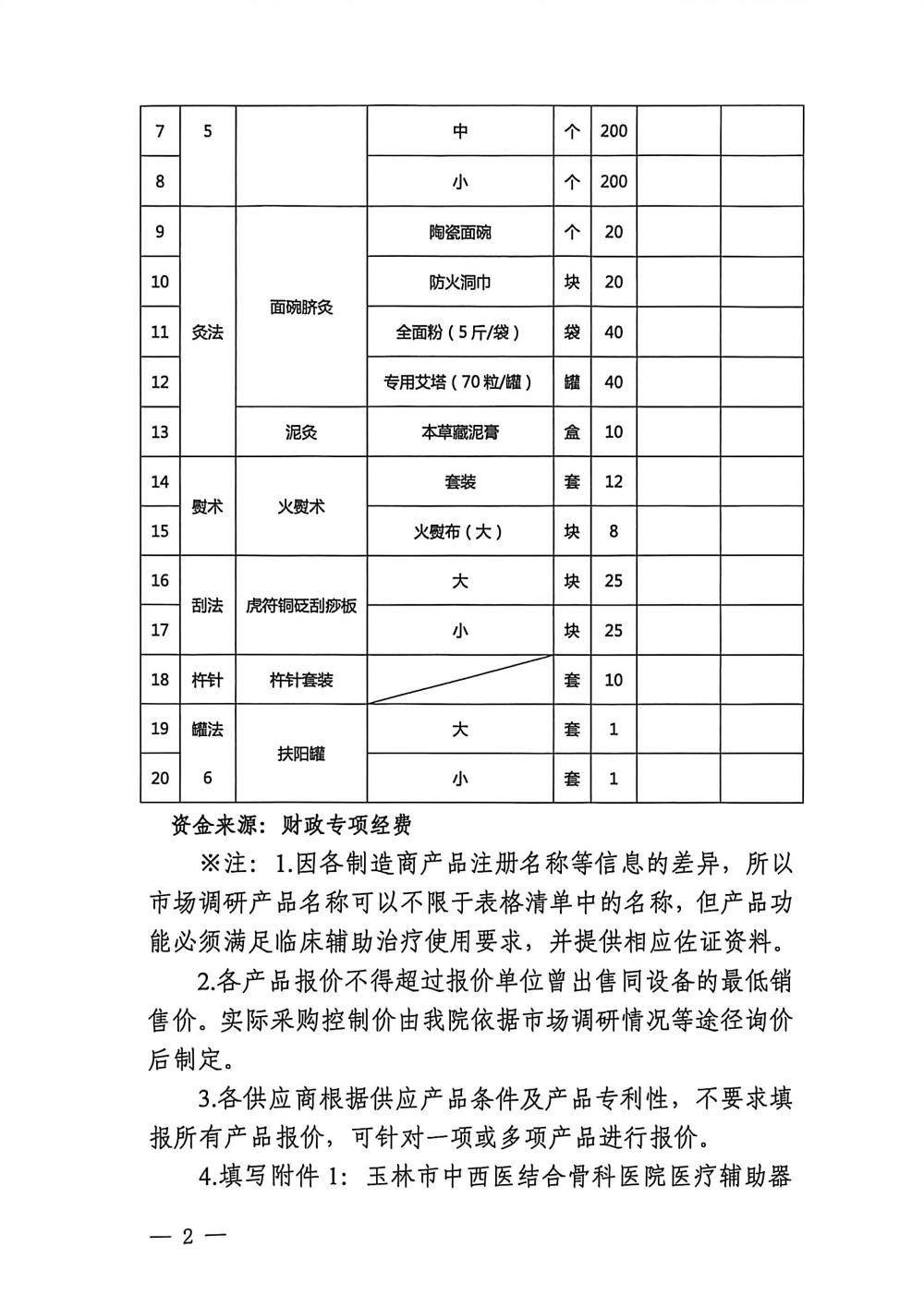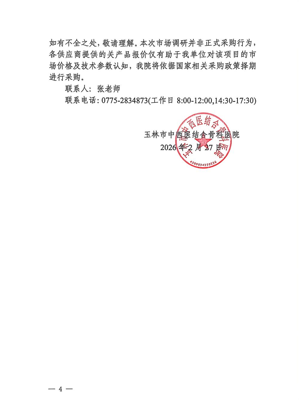 玉林市中西医结合骨科医院医疗辅助器械耗材采购市场调研公告