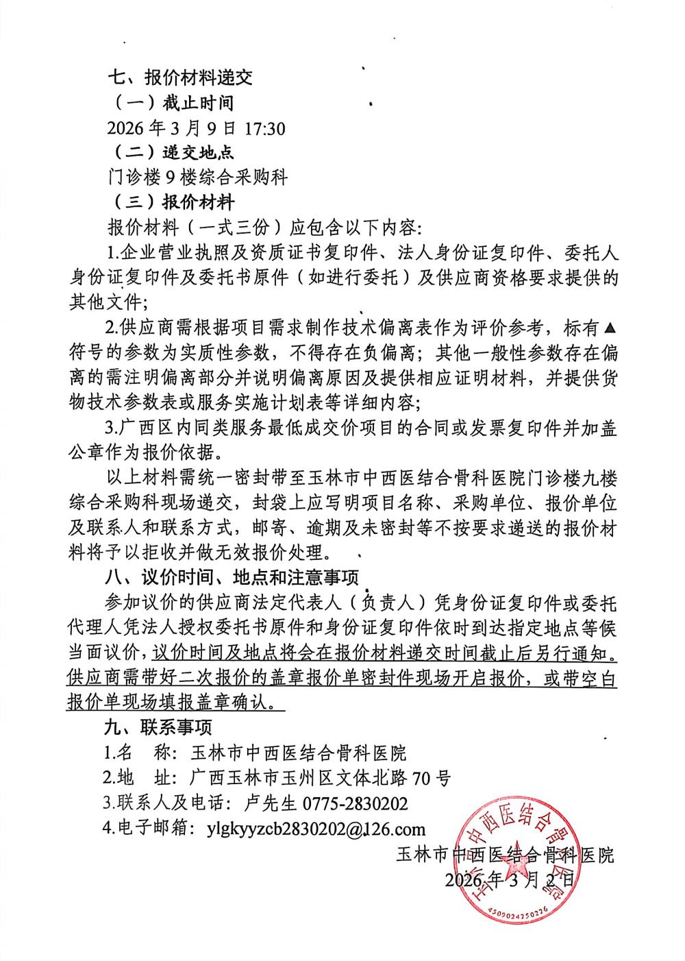 玉林市中西医结合骨科医院骨锤等器械采购项目采购公告