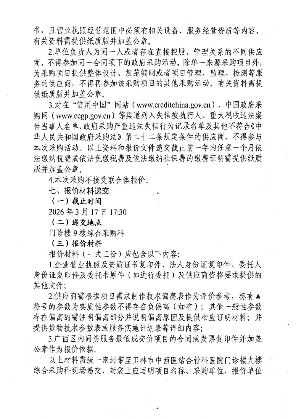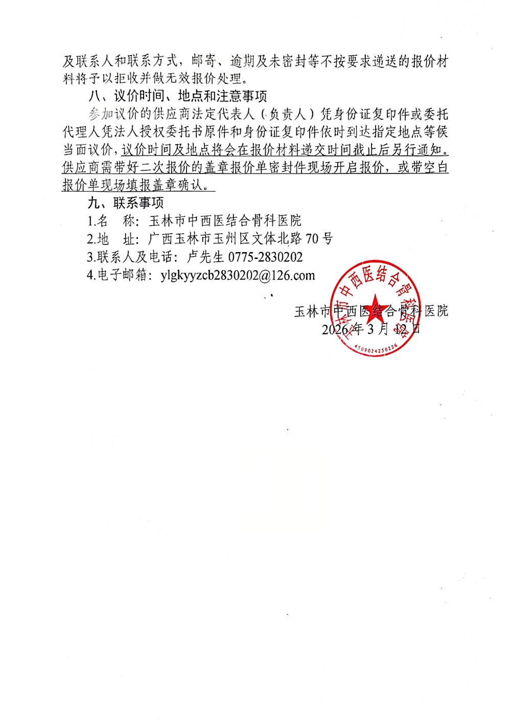 玉林市中西医结合骨科医院持骨器等器械采购项目采购公告