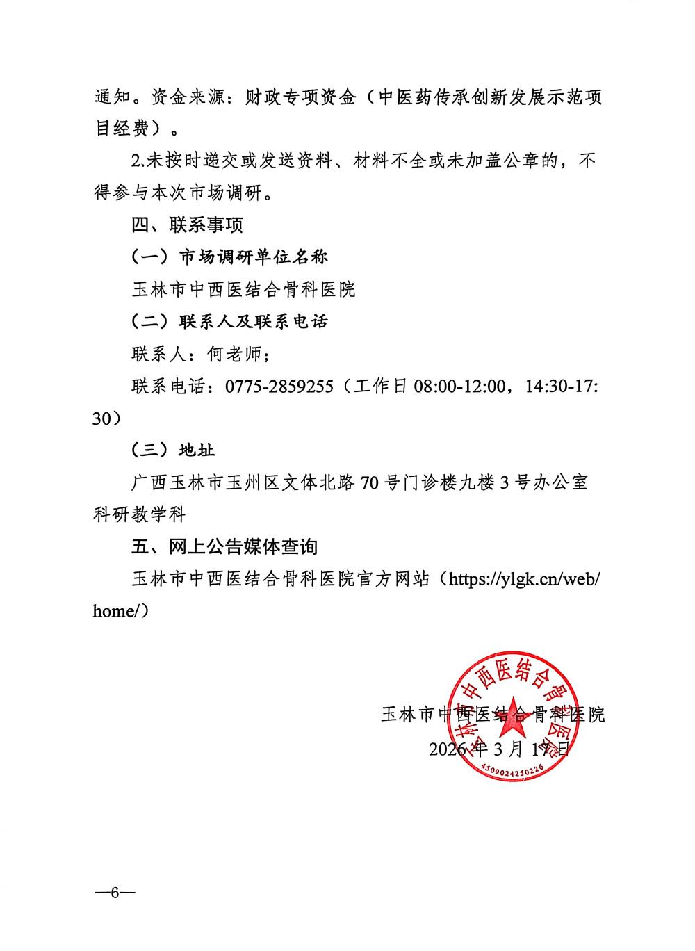 玉林市中西医结合骨科医院科研物资采购信息化平台市场调研公告
