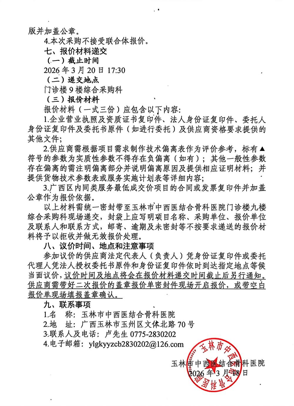玉林市中西医结合骨科医院跌打止痛膏研制项目采购公告