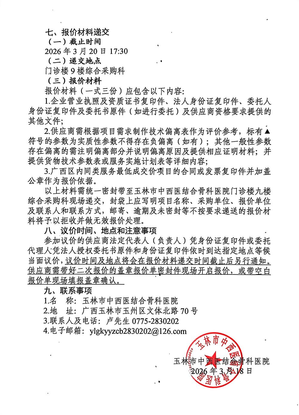 玉林市中西医结合骨科医院锐珂 DR 维保服务项目采购公告