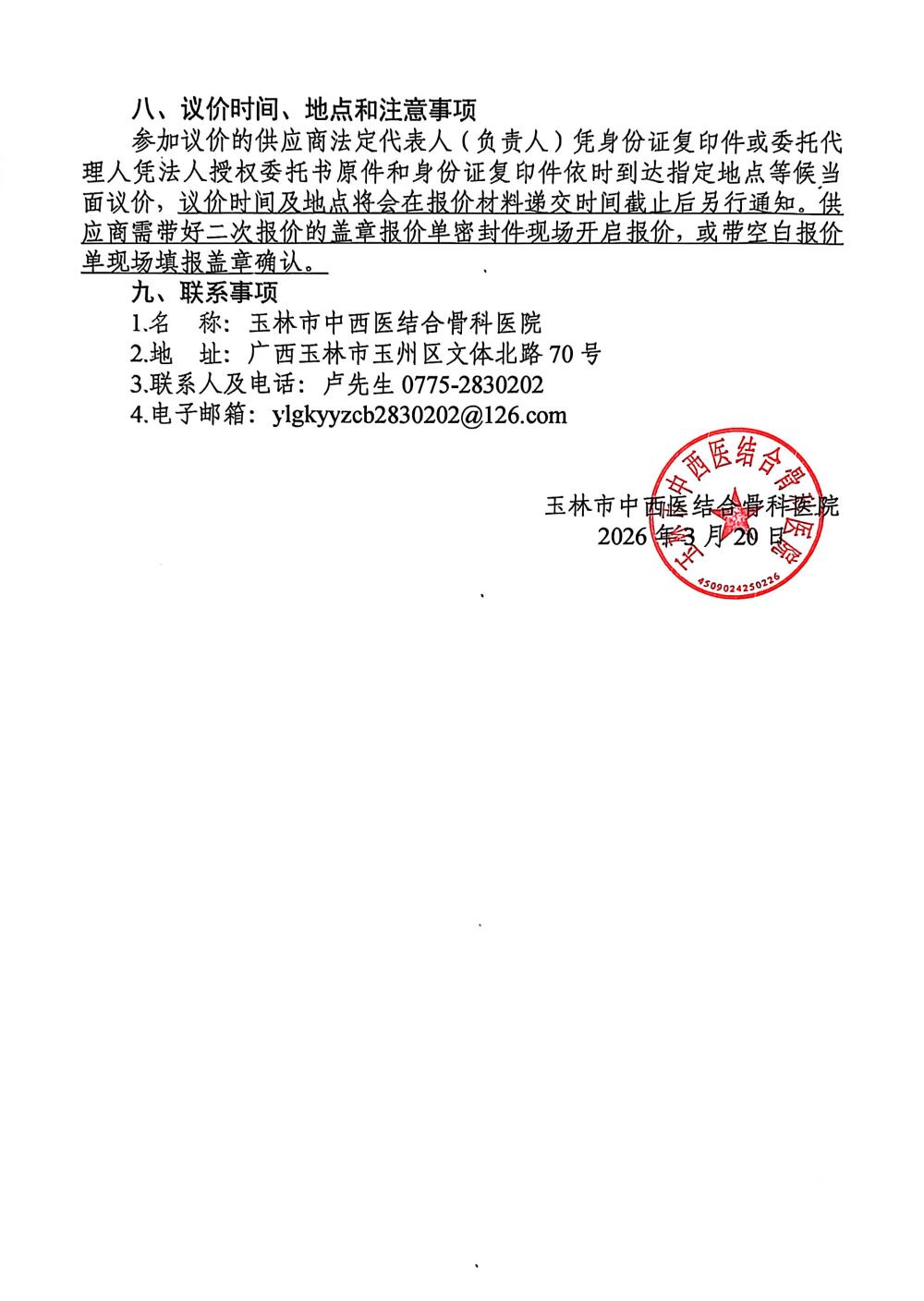 玉林市中西医结合骨科医院中医护理门诊硬件设备及环境升级改造采购公告