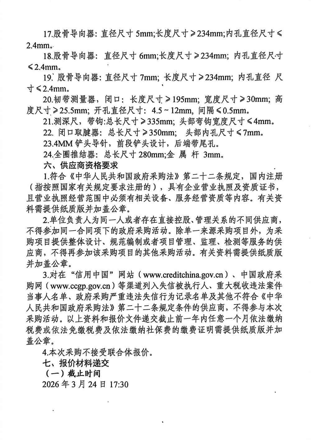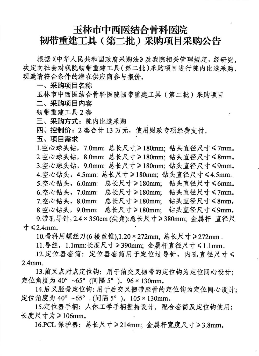 玉林市中西医结合骨科医院韧带重建工具(第二批)采购项目采购公告