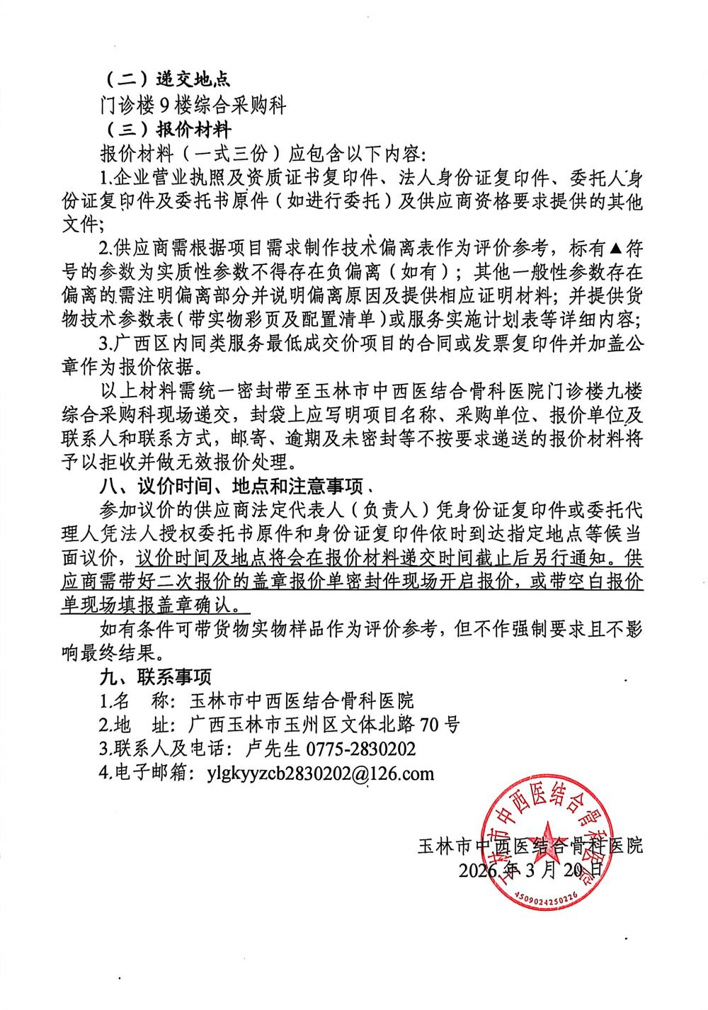 玉林市中西医结合骨科医院无创针灸(第二批)采购项目采购公告