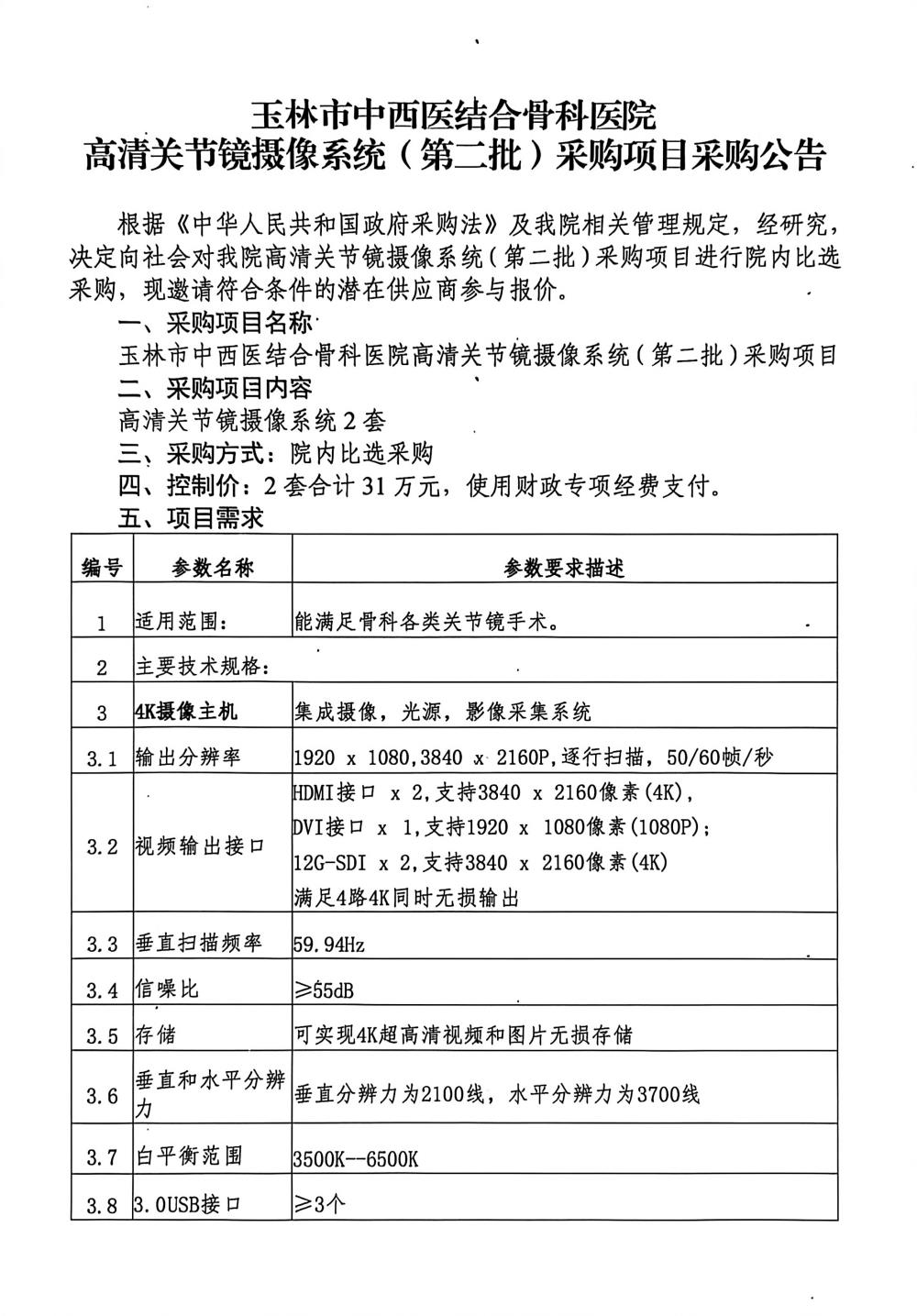 玉林市中西医结合骨科医院高清关节镜摄像系统(第二批)采购项目采购公告