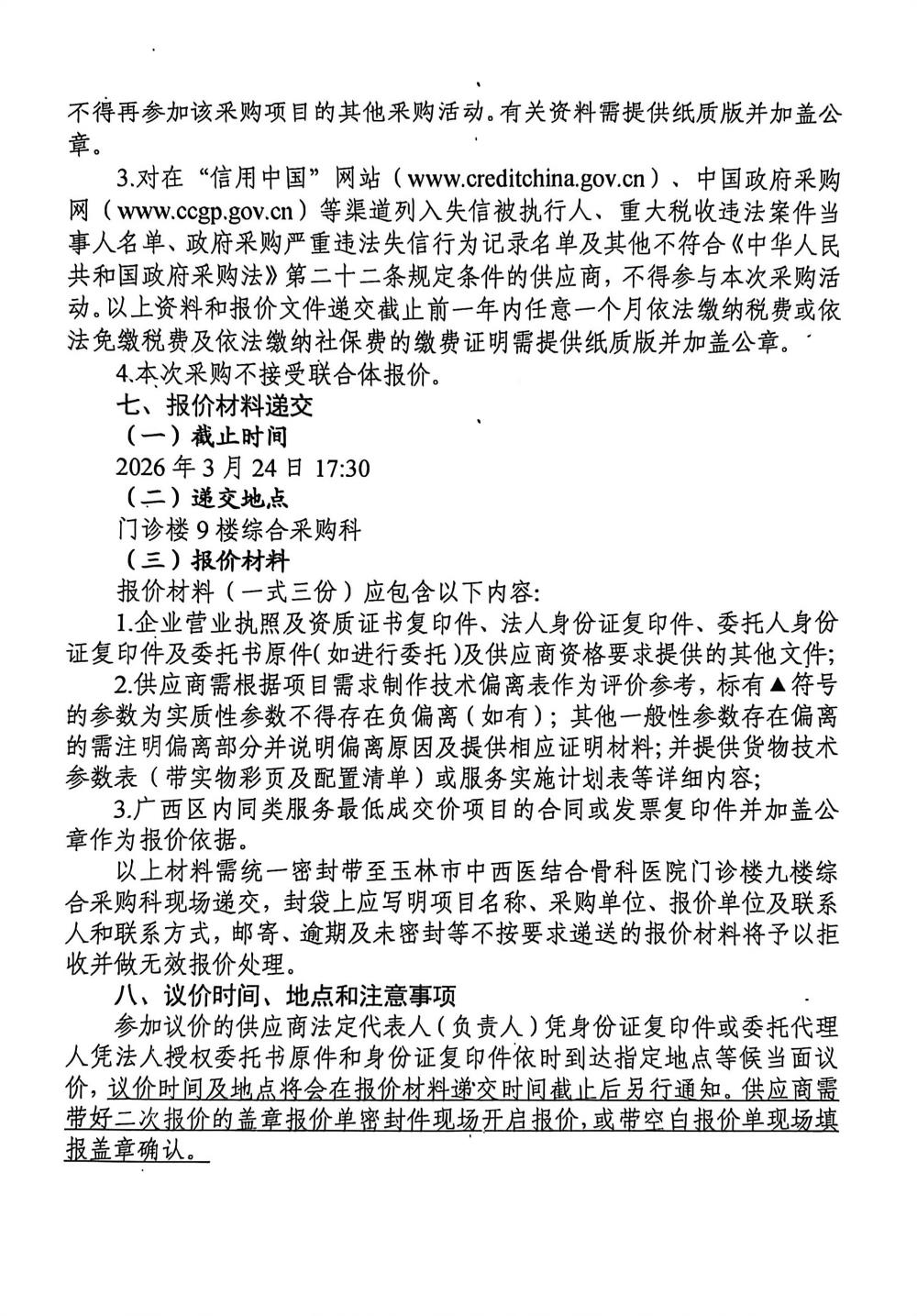 玉林市中西医结合骨科医院韧带重建工具(第二批)采购项目采购公告