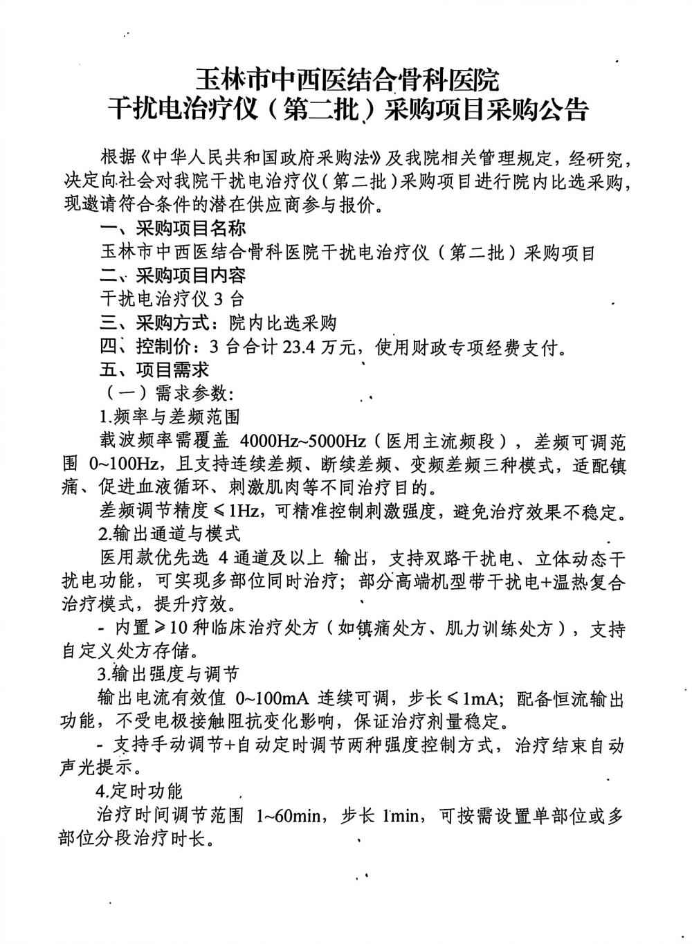 玉林市中西医结合骨科医院干扰电治疗仪(第二批)采购项目采购公告