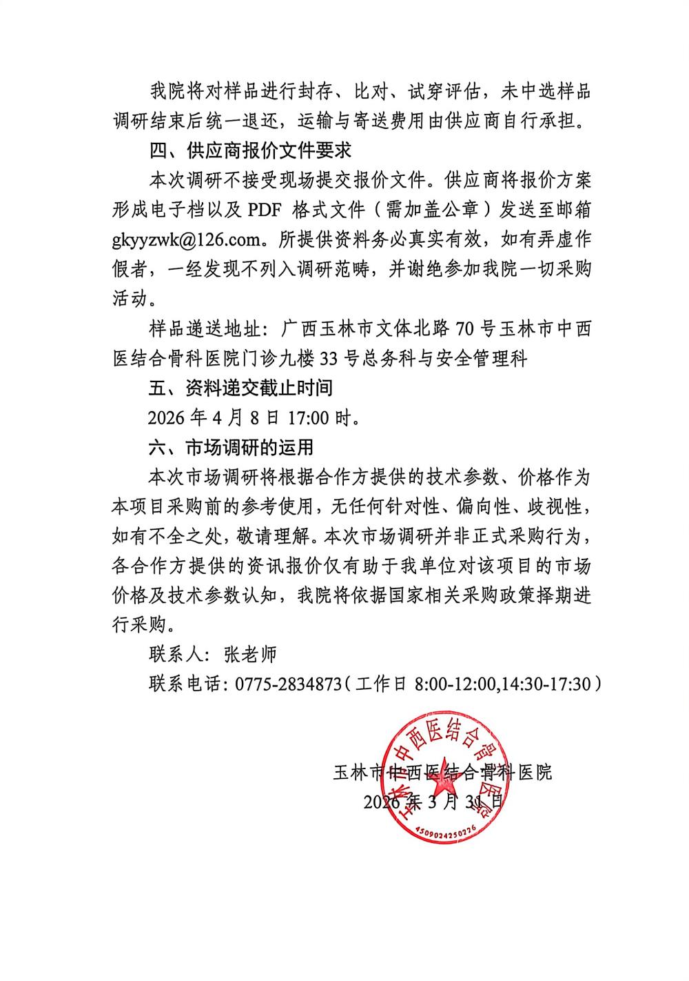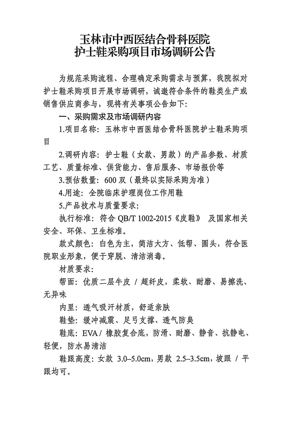 玉林市中西医结合骨科医院护士鞋采购项目市场调研公告