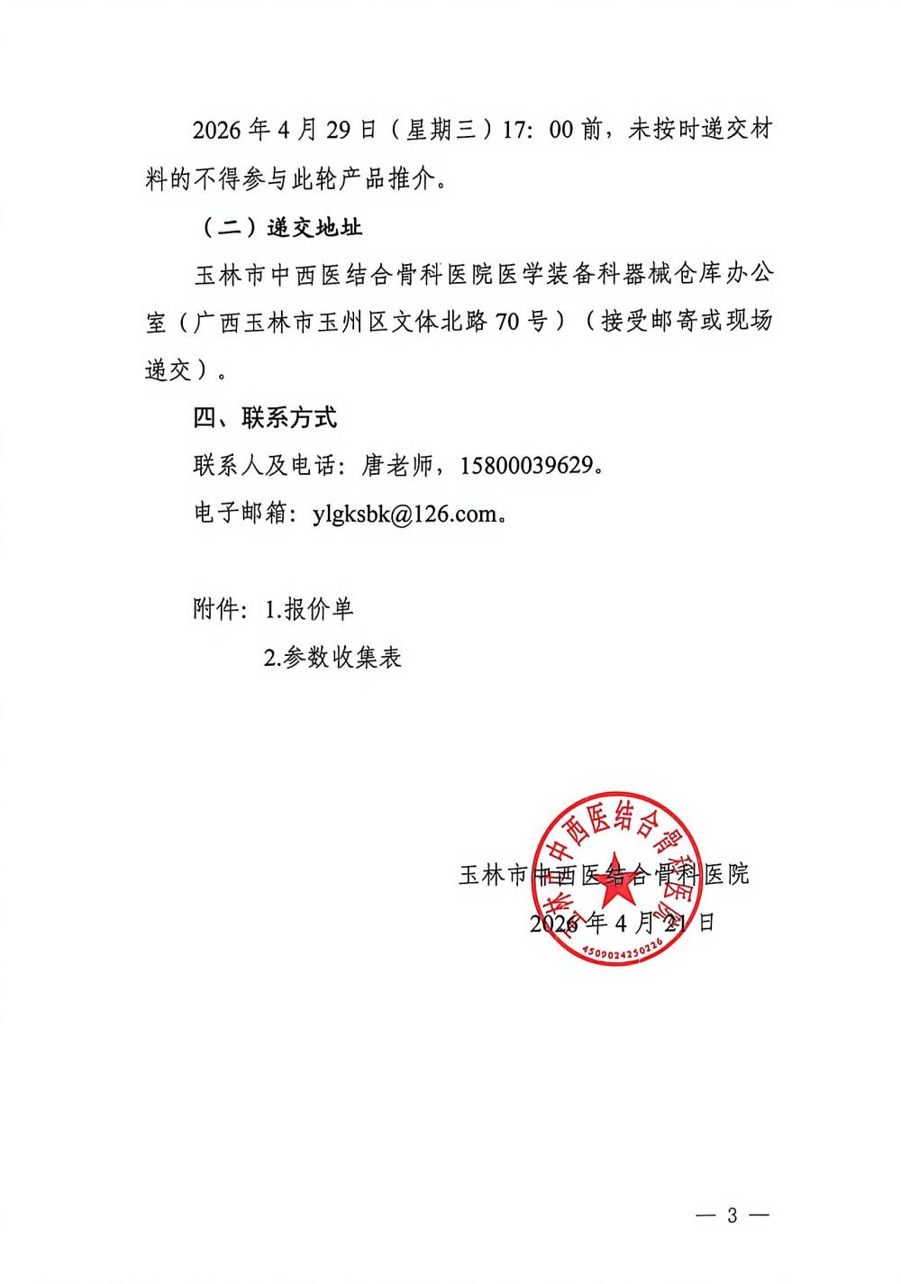 附件:1.报价单 2.参数收集表