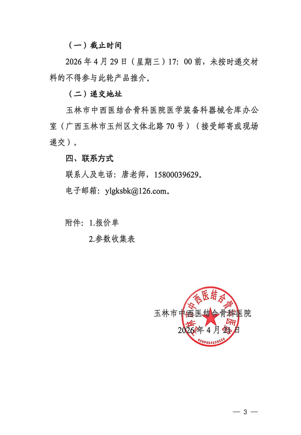 玉林市中西医结合骨科医院关于采购三维小C臂的市场调研公告