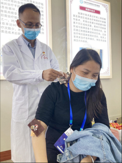展馆中央入口处,过往群众纷纷上前了解,对骨伤名医义诊服务项目称赞不已。义诊吸引了大批群众咨询和了解我院的医疗诊疗文化及技术,开始了一场关于中西医结合诊疗文化的探秘之旅。在骨伤特色展示厅,陈列展示了我院自主研发的各种医疗保健产品,骨疏宁片、正骨1、2、3号片、跌打酒、补肾健骨口服液、黑硬膏、跌打热敷散等,其中骨疏宁片于2020年入选“广西十大中药民族药院内制剂名单”,包括获得国家专利奖的小夹板疗法。这些医疗保健品及小夹板技术都是经过我院多年应用,疗效突出,也深受广大市民朋友的喜爱。本届药博会我院主推特色中医壮瑶技术,所以本届药博会,我们开设了独立的骨伤诊疗技术体验馆,向来参展的市民朋友展示我院独具特色的中医壮瑶技术,其中包括针刀疗法、温针灸、电针脐针、中医色贴、银质针治疗技术、中药泥灸、督灸、气交灸疗法、杵针、腕踝针、皮内针疗法等具有中医中药文化特色的诊疗技术。此等技术强调祛邪扶正,增强机体正气力量,通过调整机体功能状态达到治疗疾病的目的。让市民能够切身体会中医中药文化的神奇,更深入的了解我国中医中药文化的博大精深。 更多我院展馆情况,我们热烈欢迎各界人士到场参观体验,切身感受展馆全貌,进一步了解我院医院文化及特色中医壮瑶诊疗技术。