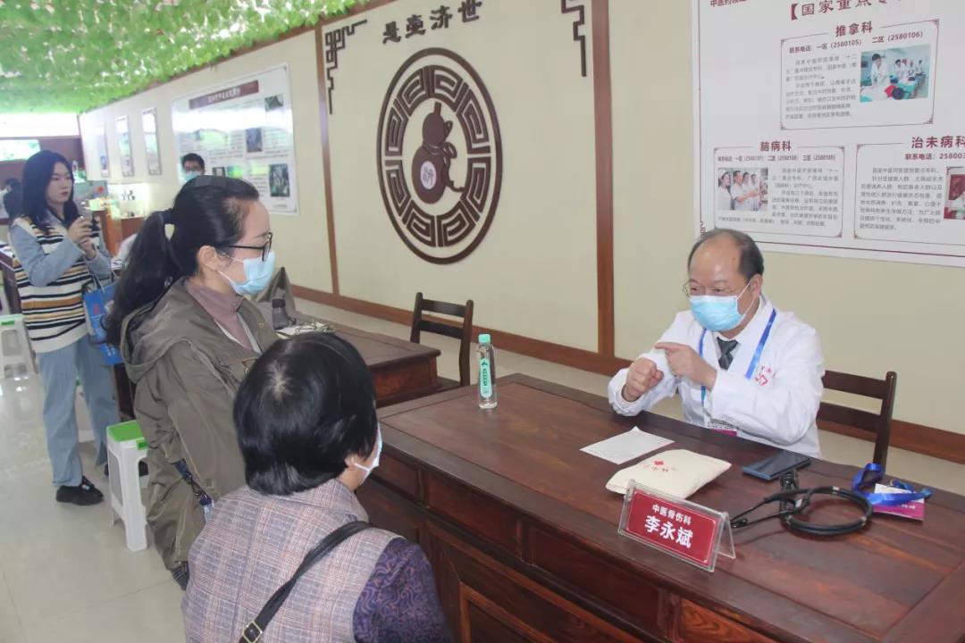 与往年一样,我院选派出名医名家到展会的中医骨伤义诊区坐诊,吸引了众多群众前来寻医问诊。有骨科专家为患者解疑答惑,同时,骨伤诊疗技术体验深受群众的欢迎。在这里,可以亲身体验治疗颈、肩、腰、腿等部位的各种中医疗法。今年展会主要突出中医壮瑶民族医药元素,我院颈肩腰腿痛科、康复医学科抽派出精干医护人员,为前来体验的群众对症施治,有大家熟悉的针灸推拿拔罐等手法,也有不为人所熟悉的脐针、梅花针、色贴、腕裸针、皮内针等中医中药特色疗法,不仅让到场体验的群众了解到民族中医药知识,还能切身体验我院独特的传统骨科中医诊疗手法,普及健康知识的同时也提升了人民群众的就医获得感。