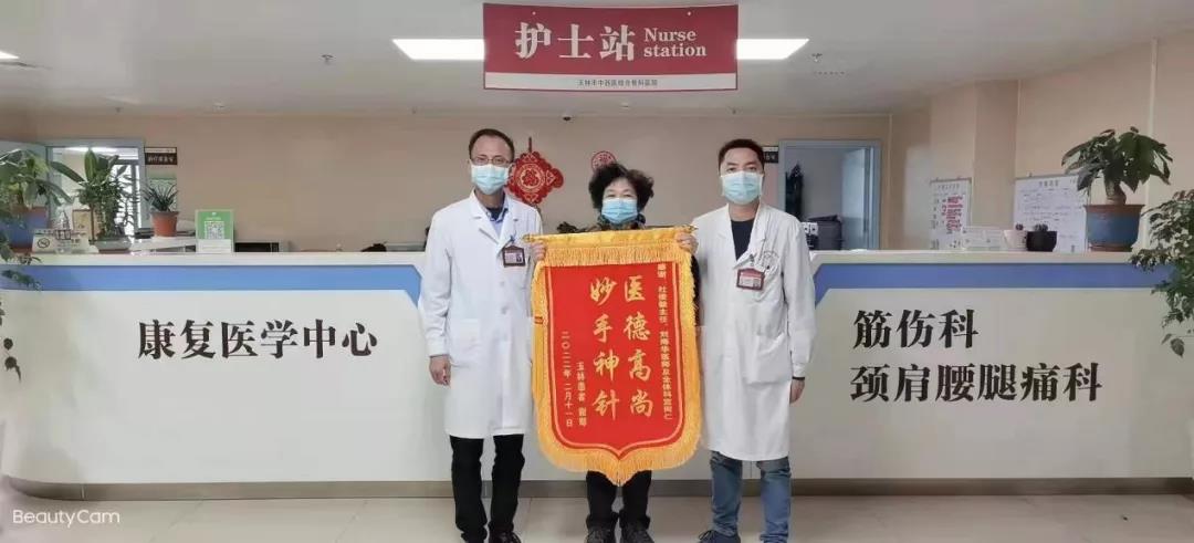 近日,玉林市中西医结合骨科医院筋伤科、颈肩腰腿痛科杜俊毅主任以及刘海华医生再次收到患者送来的锦旗,“医德高尚 妙手神针”八字,代表了谢阿姨由衷的感谢。筋伤科、颈肩腰腿痛科杜俊毅主任以及刘海华医生与患者谢阿姨合影两周前,谢阿姨在没有任何诱因的情况下,突然出现右膝关节及腰背部疼痛难忍,难以行走。在当地医院治疗了一段时间,症状未见减轻。后听说骨科医院治疗骨科疾病效果不错,于是跨市到玉林市中西医结合骨科医院筋伤科、颈肩腰腿痛科就诊。 筋伤科、颈肩腰腿痛科杜俊毅主任以及刘海华医生凭借丰富的临床经验,结合谢阿姨症状、体征、病史及辅助检查,诊断为:1、右膝半月板损伤 2、腰椎间盘突出症 3、冠状动脉支架植入术后。针对谢阿姨的情况,科室马上制定了详细的个体化治疗方案,通过对症内服中成药以益阴助阳、补肾壮骨、养血化瘀、通络镇痛;外用中药包以及特配药泥以活血止痛,祛风散寒,舒筋活络,除湿祛痹;温针、细银质针疏通经络,改善局部循环、松解痉挛、解除压迫、镇痛;以及患肢功能锻炼等,以期给予谢阿姨最佳的治疗效果。