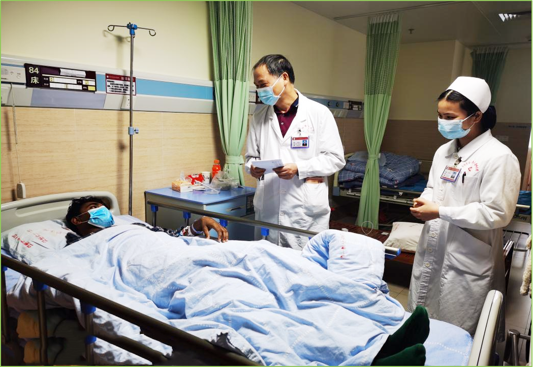近日,玉林市中西医结合骨科医院脊柱一科收治了一位来自孟加拉国的外国友人,带他来的是脊柱一科的“老熟人”——莫阿姨。原来莫阿姨在脊柱一科治好了严重的腰间盘突出症,现在又带着外国的女婿来治病了。