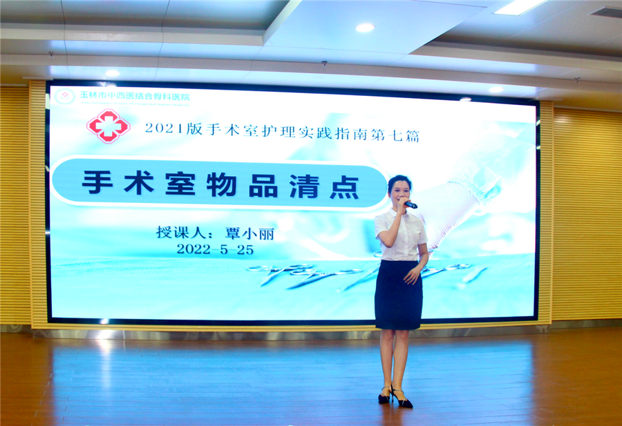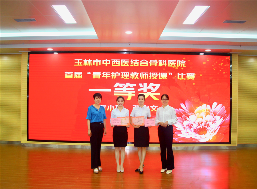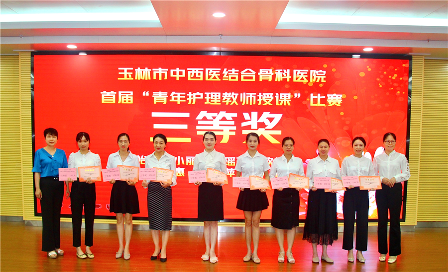 选手授课完毕,评委专家们从教学内容、教学组织、语言教态和教学特色、课件制作等方面结合选手们具体表现进行了评定并现场评分。 整场比赛精彩纷呈,经过激烈角逐、评委的综合客观的评价与评分,我院覃小丽、张宝文荣获一等奖;杨丽平、蓝玉杏、陈婷荣获二等奖;朱雯怡、张小丽、陈瑶瑶、欧艳、庞婷、关敏惠、庞艳萍、周小玲荣获三等奖。 在最后,护理部主任梁波发表了总结讲话。她指出“护理授课比赛是技能的比拼,也是经验的交流”,她给予了参赛选手的总体表现充分的肯定。通过本次比赛活动,让参赛选手们得到了很好的锻炼,培养了护理青年教师严谨笃学,爱岗敬业精神,提高业务素质和教学水平,营造积极向上的教学研讨氛围,增进护理人员之间的经验交流,进而全面提高我院护理教学质量。同时针对选题、讲课技巧、师生互动、幻灯片制作、职业素养等方面提出了中肯的意见和殷切的希望。 “一片冰心育桃李芬芳,满腔热情为杏坛耕耘”,护理教学之路任重而道远,只有培育出优秀的临床护理带教老师,才能培养出优秀的护理事业接班人。玉林市中西医结合骨科医院护理部正在用实际行动履行着“护理”的职责,践行“教书育人”的使命,为健康玉林事业培养深厚人文底蕴、专业精湛、崇高职业素养的护理人才!