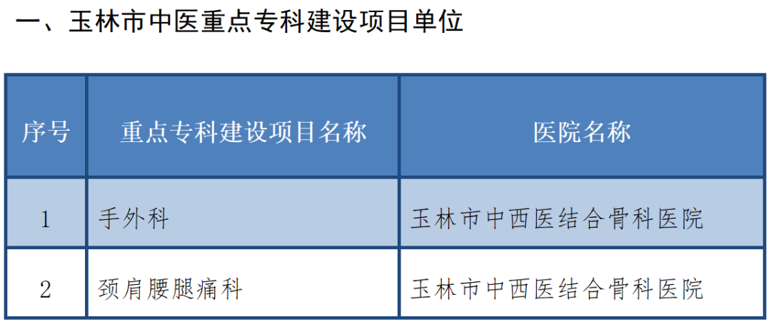 玉林市中医重点专科建设项目单位