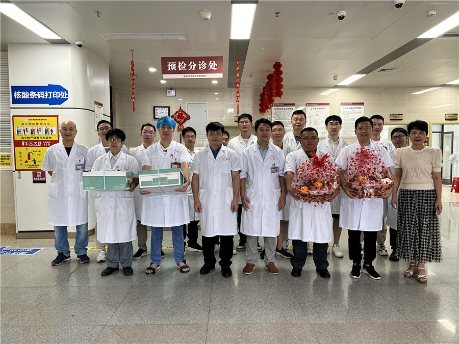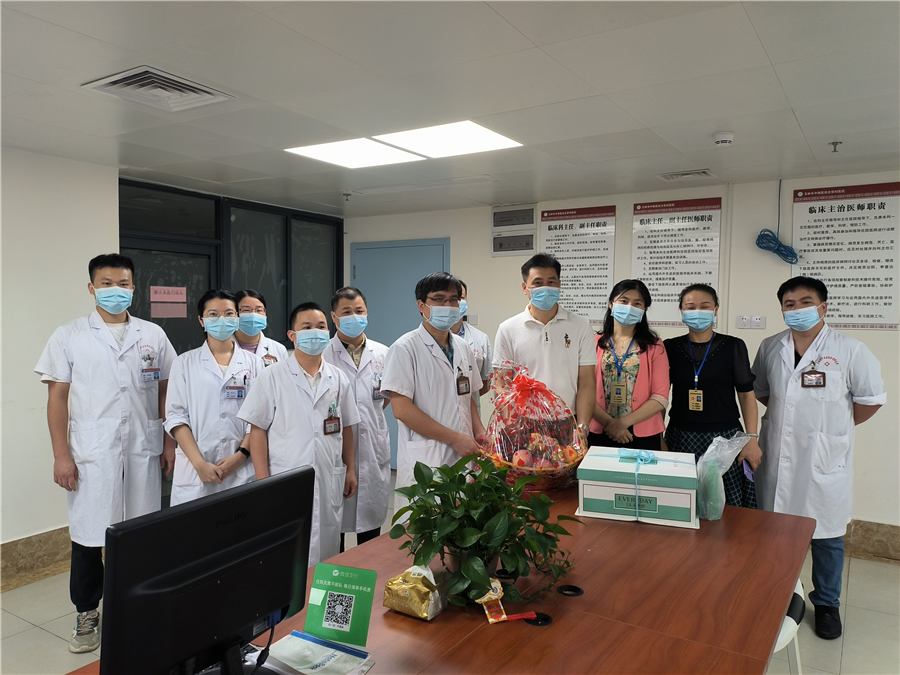 ◆图为玉林市卫生健康委员会杨媚副主任一行来到我院慰问临床一线医师留影