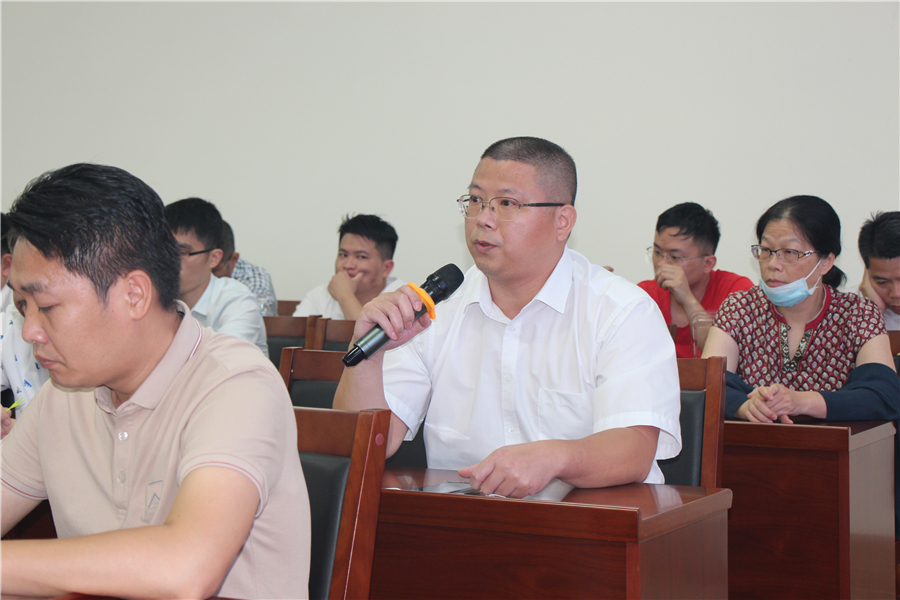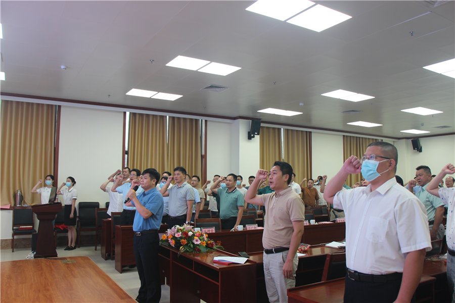 会议最后进行了重温医师誓词活动。在梁博伟院长的领读下,全体医师起立,高举右手,进行庄严宣誓。