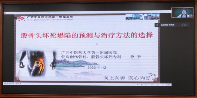 11月12日,“桂东南微创关节置换暨股骨头坏死诊疗及康复治疗高峰论坛暨广西中医药适宜技术开发与推广项目学习班”采用线上线下相结合的形式,在玉林市中西医结合骨科医院召开!