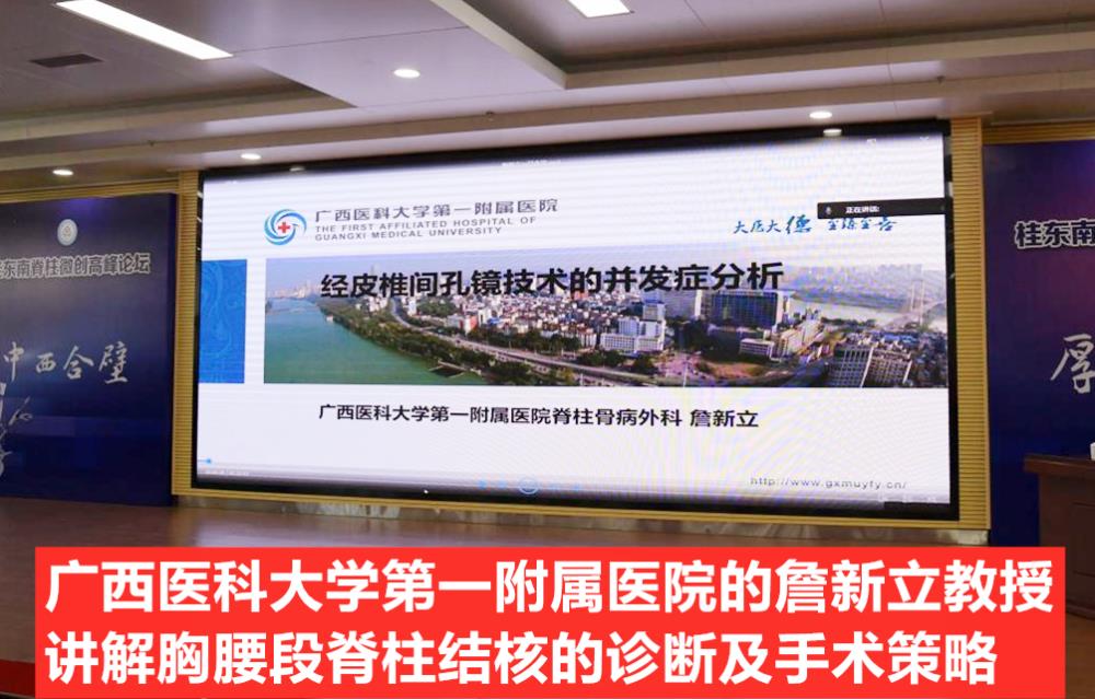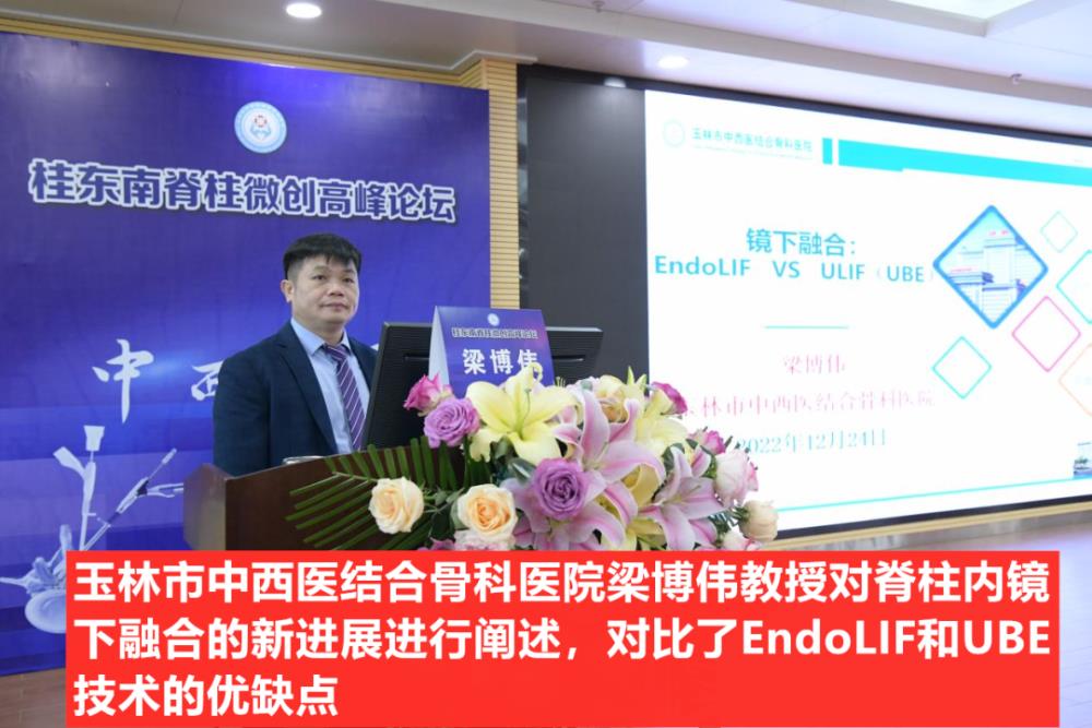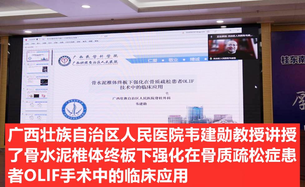 12月23-24日,为期两天的2022年桂东南脊柱微创高峰论坛在玉林市中西医结合骨科医院举办。大会采用“线上+线下”,手术直播演示+学术报告的双结合形式同期进行,让更多无法亲临现场聆听授课的全国同道也可通过现场直播进行远程学习,踊跃参与,一同探讨骨科前沿医学和新成果展示。