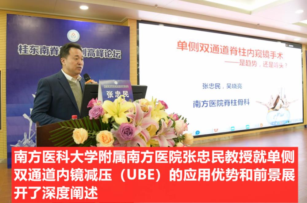 学术交流环节,由我院李开静副院长主持。本次学术会议邀请到南方医科大学附属南方医院张忠民教授致辞。会议总共分为5个环节,邀请了区内外脊柱领域的专家进行演讲,重点围绕以经皮脊柱内镜为代表的镜下精准减压技术、以UBE为代表的双通道、多通道内镜下技术,分别从脊柱微创技术、快速康复和中医药视角进行学术交流。