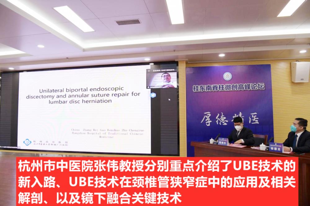 手术演示环节,由我院刘宇河副院长主持。医院党委吕广华副书记在致辞中介绍了与会嘉宾和课程安排。梁博伟院长带领手术团队就UBE技术和椎间孔镜微创技术进行了本次学术会议手术示范直播。整个手术过程规范流畅,严谨娴熟,配合默契,充分展示了我院脊柱微创团队精湛的技术水平,赢得了现场和线上同道的一致好评。来自区内脊柱微创领域的10多位专家陆续登台展开病例讨论,现场学术氛围浓厚。