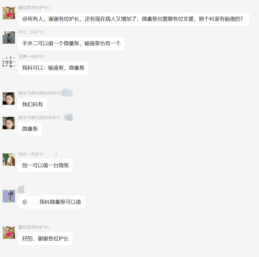面对重重的压力,全院各战线人员坚守岗位,齐心协力做好药品、设备、物资等重症医疗资源储备保障。危急重症患者入院治疗,呼吸机必不可少,目前全院14台呼吸机超负荷工作。“ICU监护仪不够用了,哪个科室可以借一个监护仪给我们?”“我们可以借一台”“手外一科可以”“还有我们创伤一科”···在重症医学科因病人剧增需要调度呼吸机以及微量泵等设备的时候,医院其他科室纷纷借出自己科室的器材,全力配合救治工作,为救治生命拧成一股绳,全力以赴,争分夺秒续写生命故事。