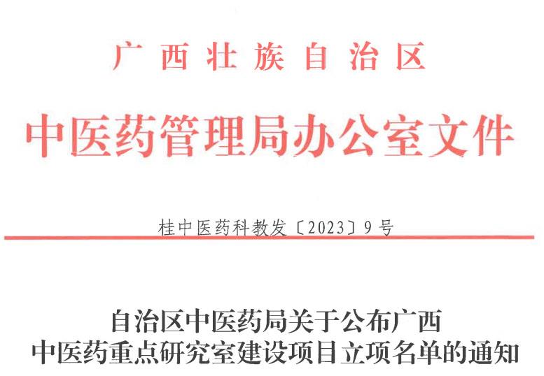 近日,自治区中医药管理局公布了广西中医药重点研究室建设项目立项名单,玉林市中西医结合骨科医院获评广西中医药重点研究室建设项目——广西中医药防治骨伤疾病重点研究室(培育),这也是我院首次实现省级中医药重点研究室零的突破。