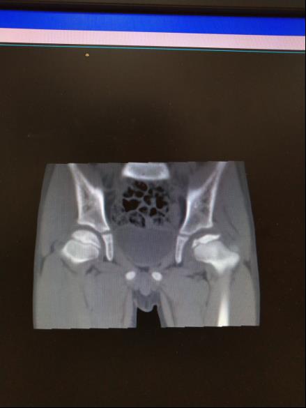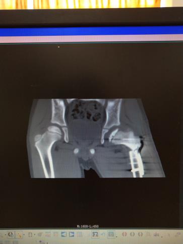 儿童股骨头缺血性坏死行粗隆下内翻截骨钢板内固定治疗,增加股骨头包容,效果满意。图是CT片