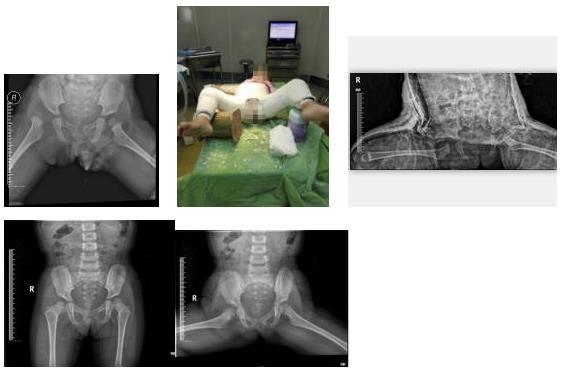 右髋关节发育性脱经髋人类位石膏外固定保守治疗,保守治疗后随访5年股骨头与髋臼匹配无再脱位,股骨头发育良好,无坏死。