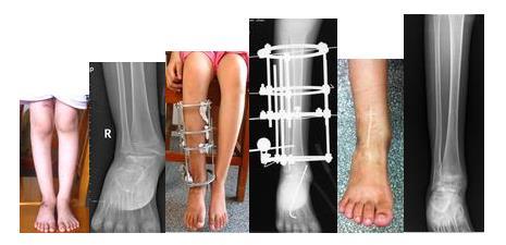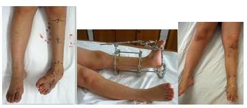 外伤性外踝缺损伴踝外翻 使支架后用俄罗斯外固定支架治疗后恢复正常。