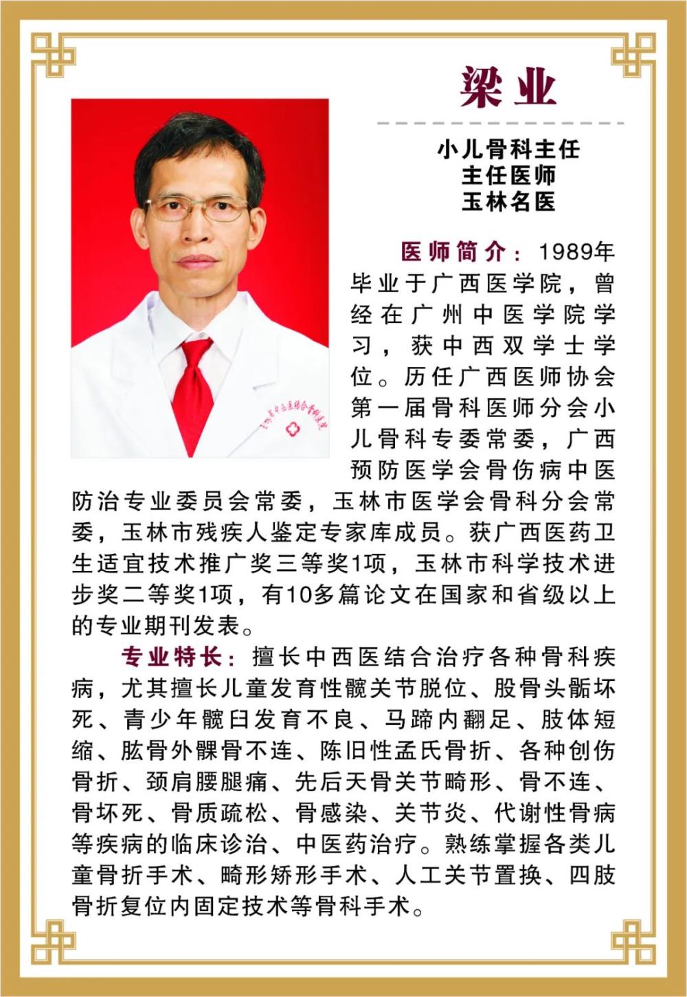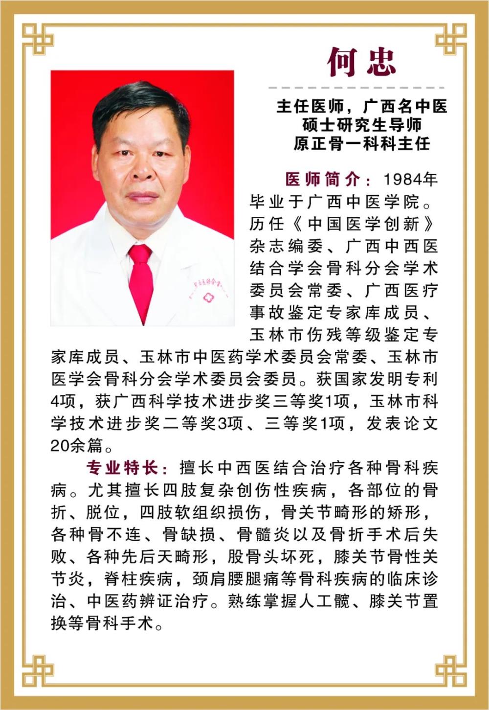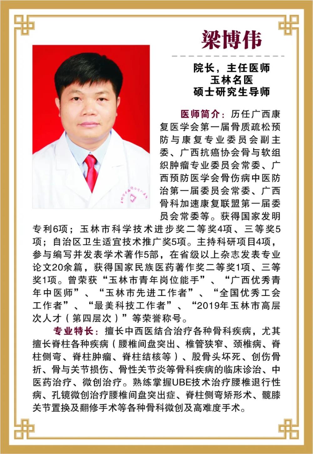 玉林市中西医结合骨科医院名医堂专家坐诊时间