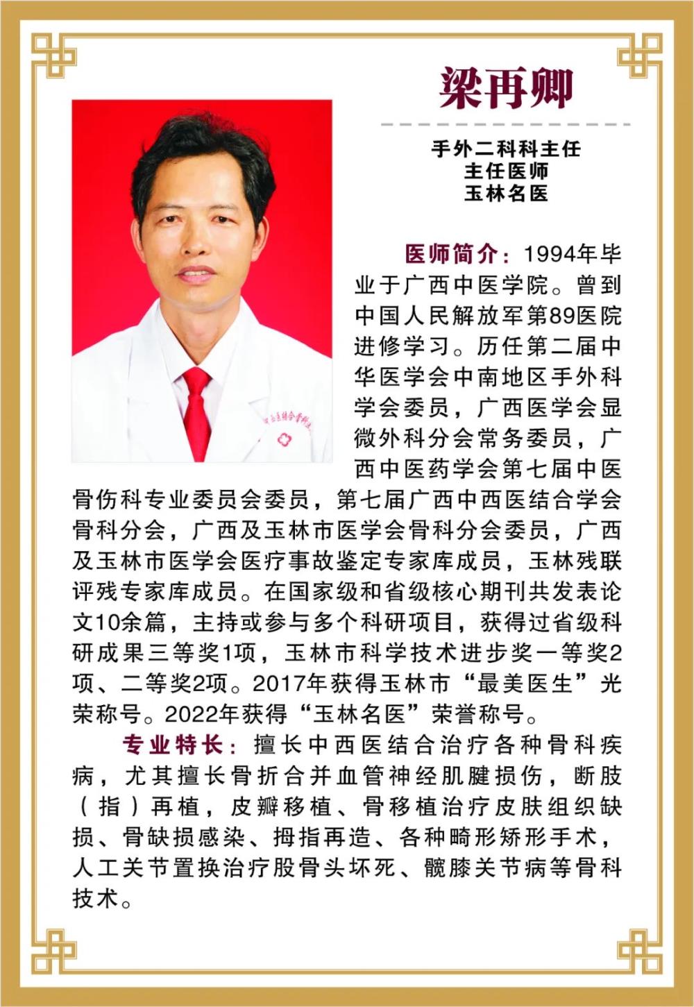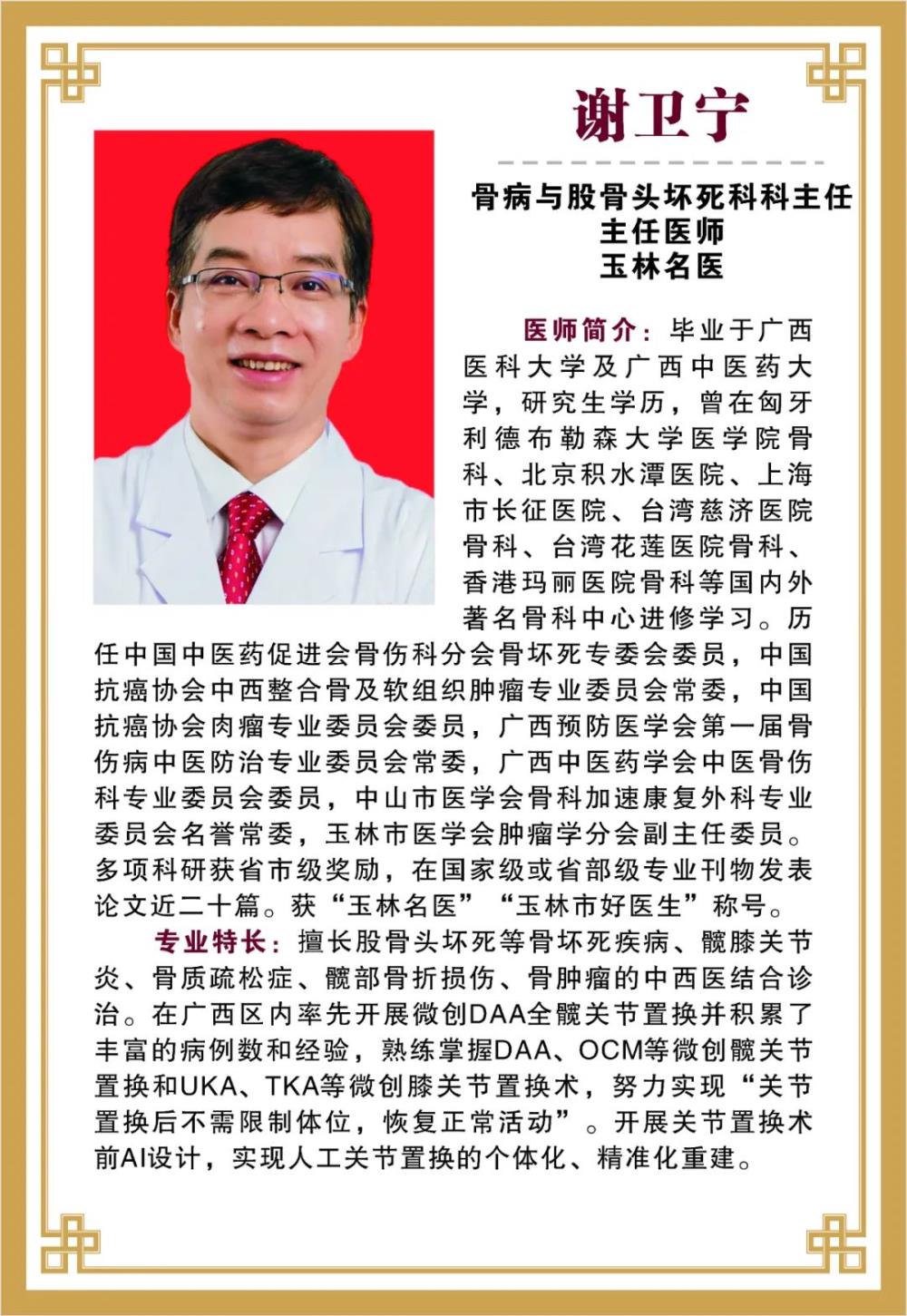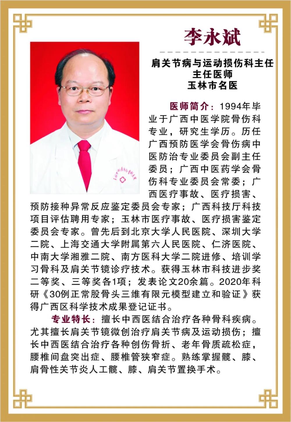 玉林市中西医结合骨科医院名医堂专家坐诊时间