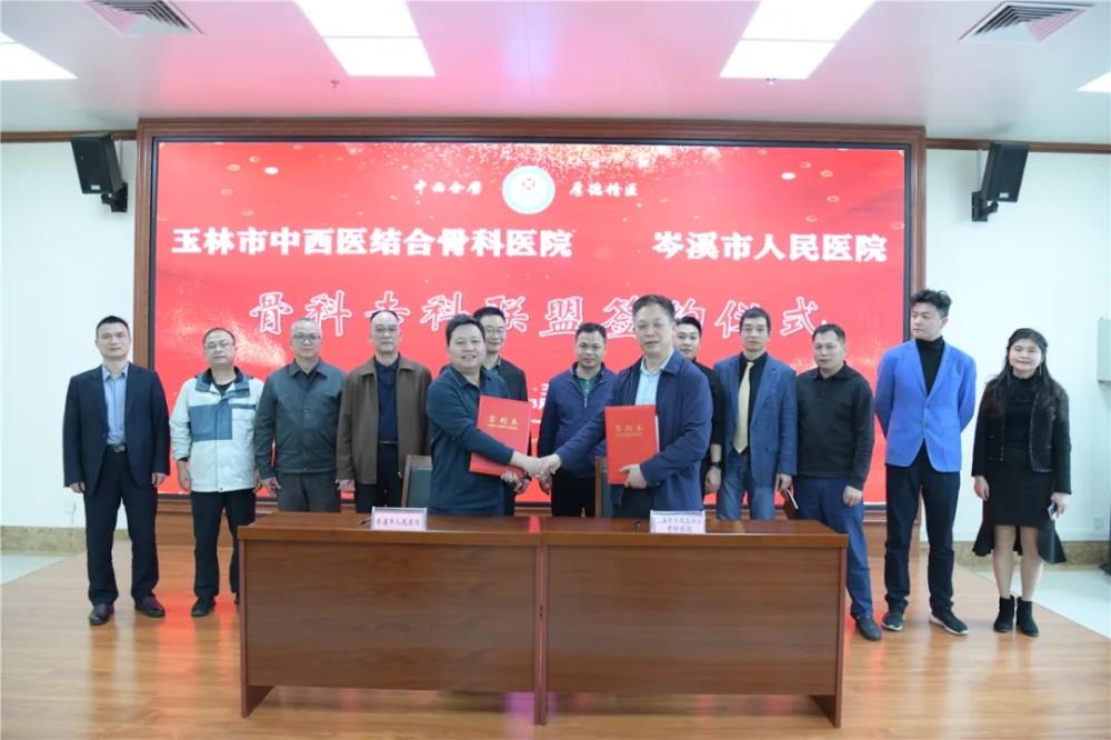 为深化医药卫生体制改革,推进建立上下联动的医疗服务体系,更好地发挥三级医院专业技术优势及带头作用,加强下级卫生机构能力建设,构建分级医疗、急慢分治、双向转诊的诊疗模式,促进分工协作,合理利用资源,方便群众就医。3月21日,我院与岑溪市人民医院正式举行了医疗联合体及专科联盟合作签约仪式。岑溪市人民医院副院长钟里军一行,玉林市中西医结合骨科医院党委副书记吕广华、副院长李开静、医务科负责人梁周以及各职能科室负责人出席了签约仪式。