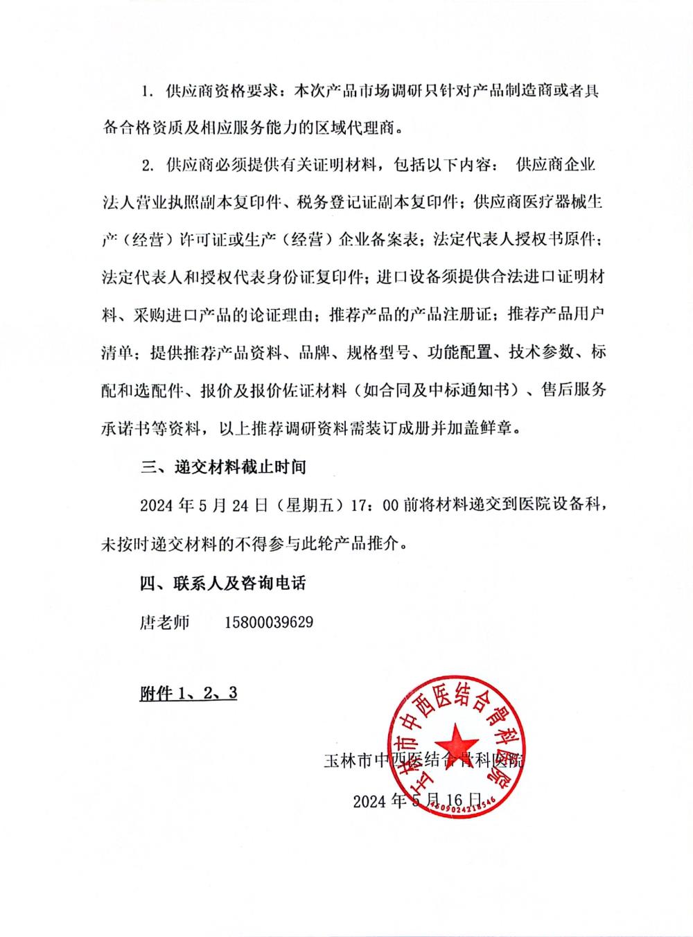 玉林市中西医结合骨科医院设备产品市场调研公告附件.docx