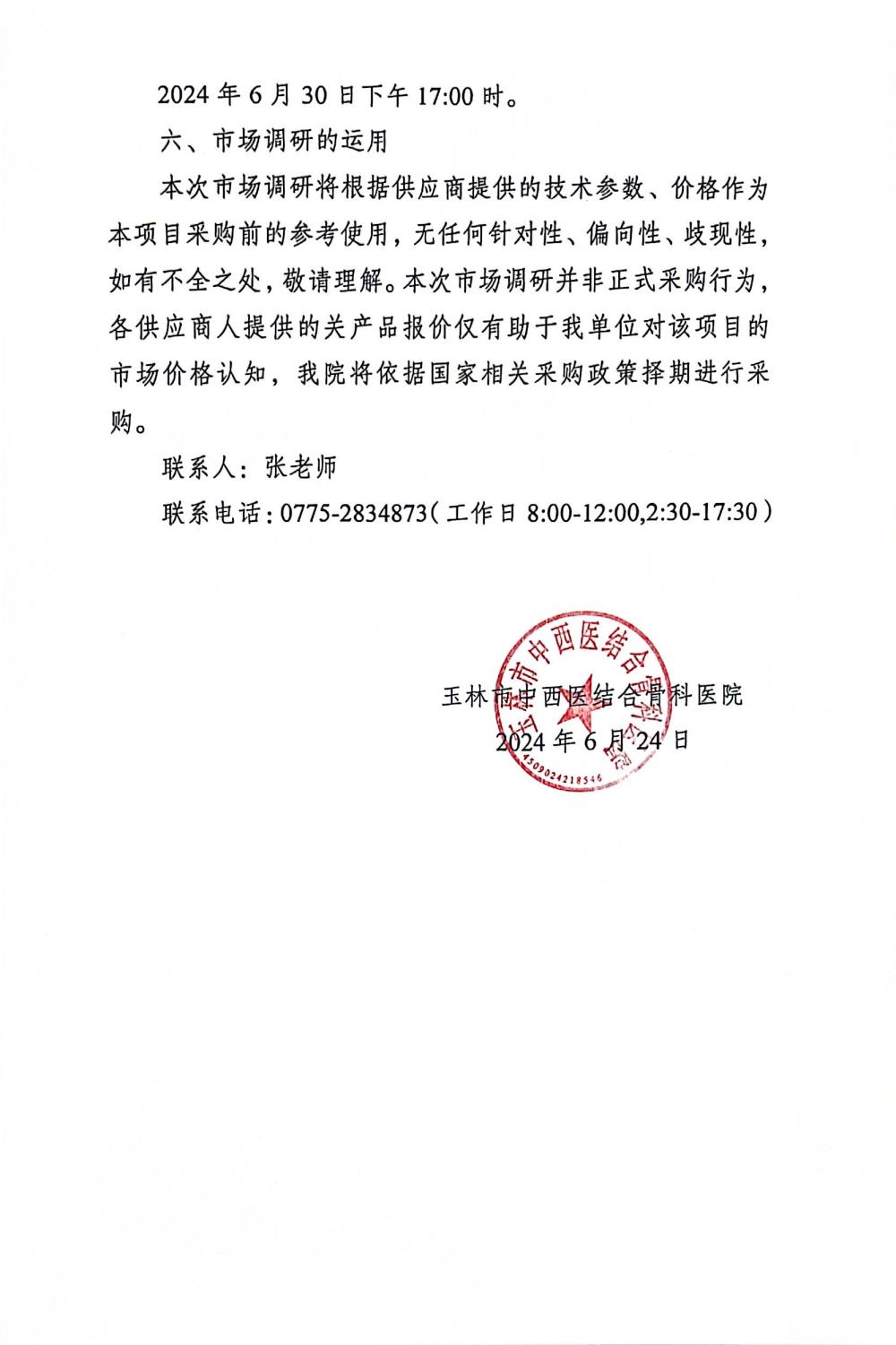 玉林市中西医结合骨科医院 微创针刀镜手术器械及配套设备、 智能温热牵引系统、高频电刀、手术无影灯、 4K膝关节镜系统及器械 市场调研问询公告