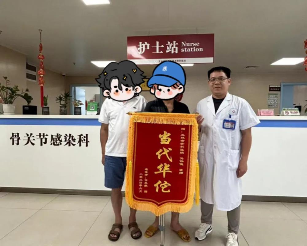 近日,即将出院的甘先生将一面绣有“当代华佗”四个大字的锦旗送到了玉林市中西医结合骨科医院骨关节感染科护士站,感谢黄伟俊主治医师及全体医护人员的专业治疗和关怀。
