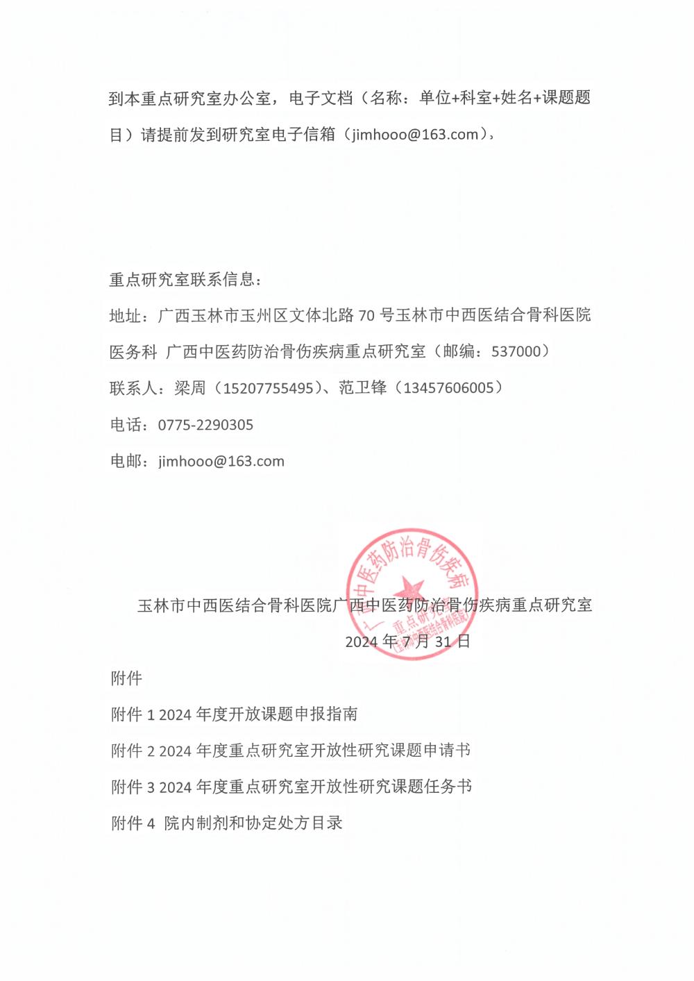 附件:关于申报2024年度广西中医药防治骨伤疾病重点研究室开放课题