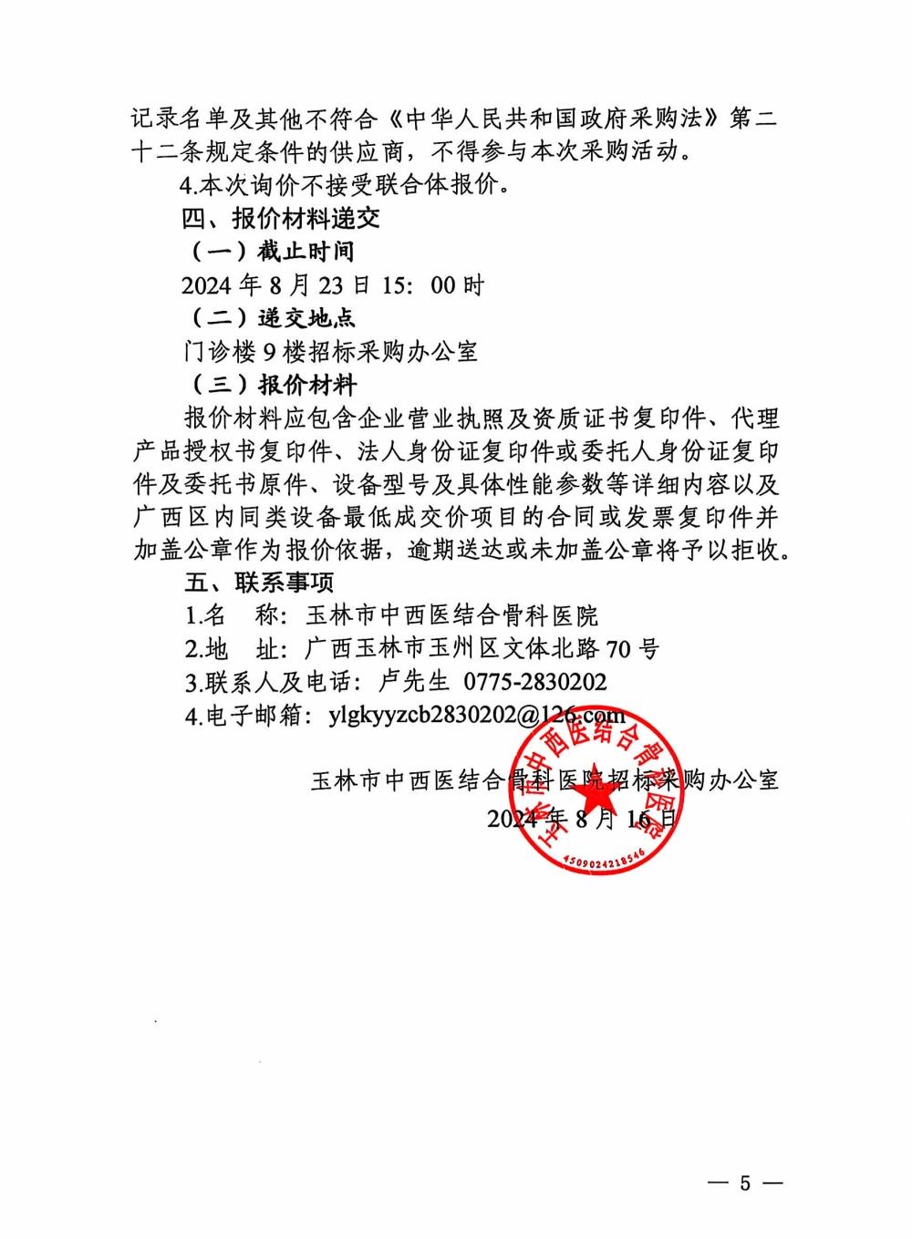 玉林市中西医结合骨科医院中央空调主机及设备维护保养项目市场调研公告