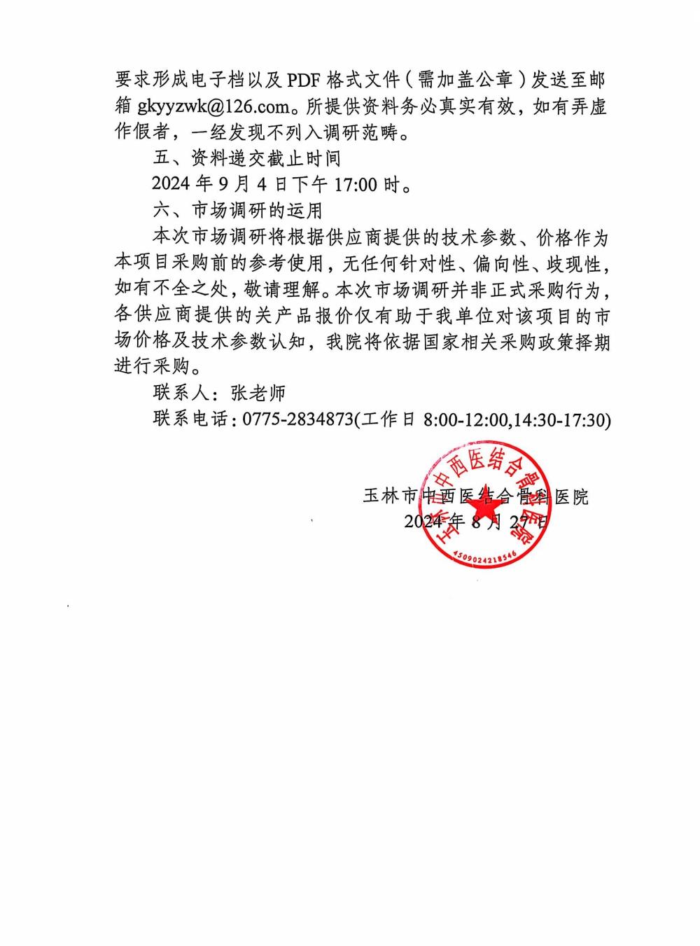 玉林市中西医结合骨科医院2025-2026年度制剂产品内包材采购项目市场调研公告